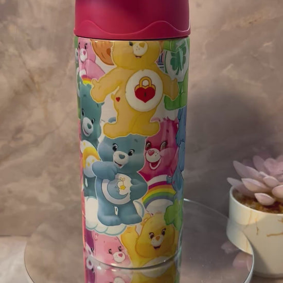 Bring a little love and color to your child’s day with the 12 oz Care Bears Stainless Steel Tumbler. Featuring adorable, full-color Care Bears graphics, this kid-sized tumbler is crafted from durable, food-grade stainless steel to keep drinks cold for hours. The double-wall vacuum insulation prevents condensation, while the flip-up straw lid makes it easy (and fun!) for little ones to sip on the go.