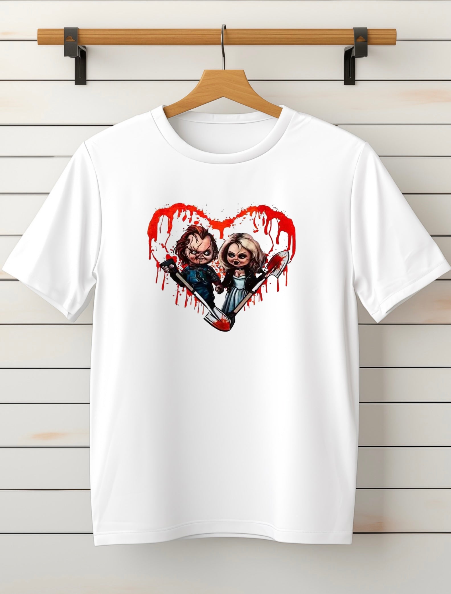 Get ready to slay this spooky season with our Chucky & Bride Halloween T-Shirt — featuring the most iconic killer couple in horror history. Whether you’re a fan of vintage slasher vibes or just love twisted romance, this tee is the perfect mix of creepy and cool.