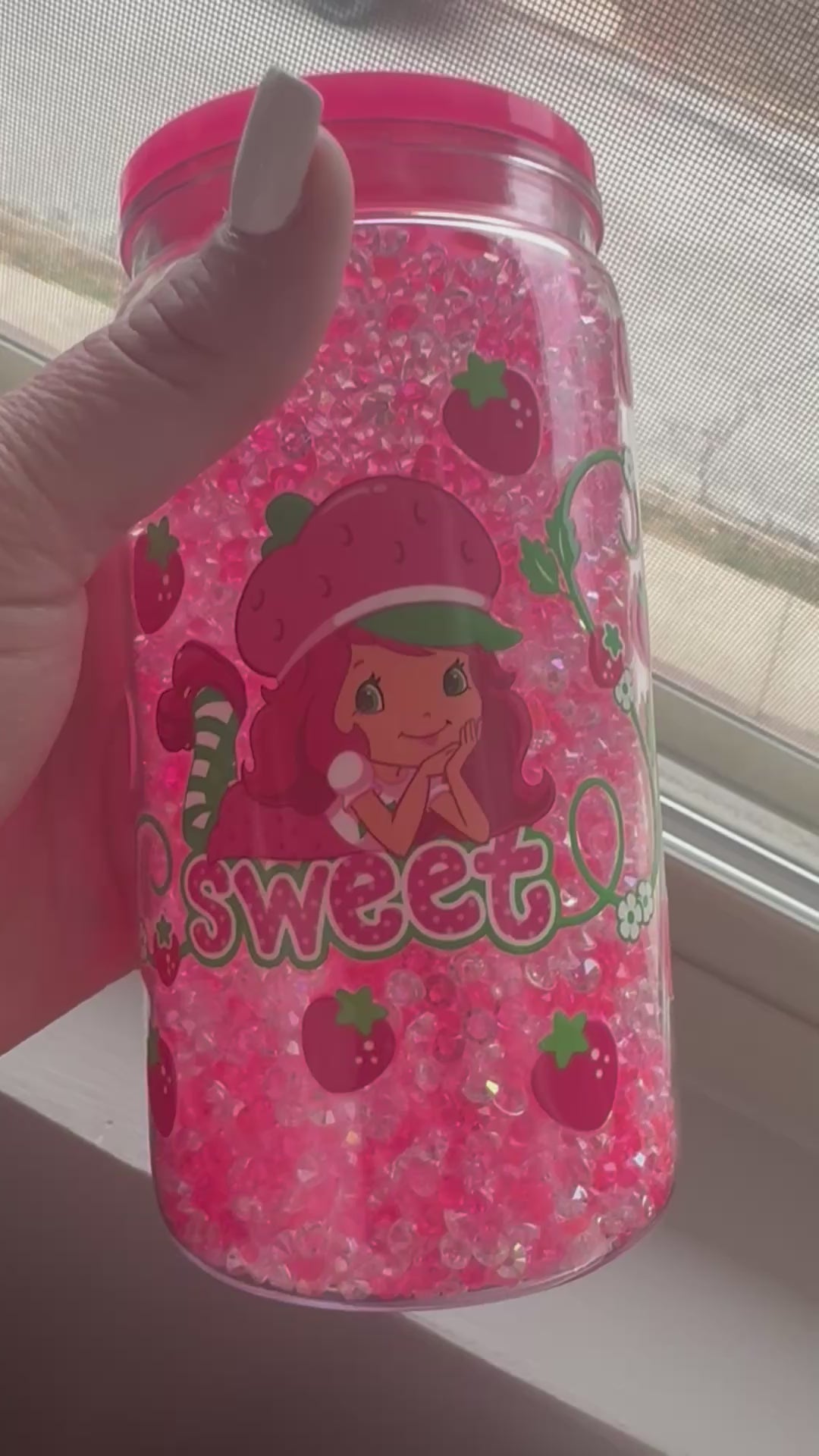 š Cute Strawberry 16oz Acrylic Glitter-Filled Snowglobe Cup